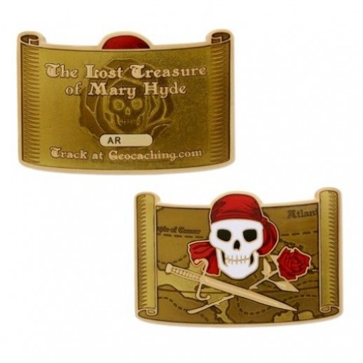 Geocoin oficial al promoției de suveniruri "The Lost Treasure of Mary Hyde"