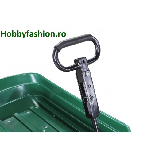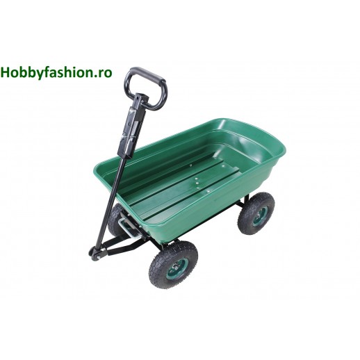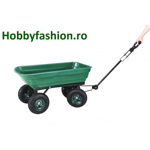 Remorcă basculantă robustă, cu funcție de basculare blocabilă, capacitate de până la 300 kg și volum de aproximativ 75 litri. Ideală pentru grădină, curte, fermă sau lucrări de transport ușor.