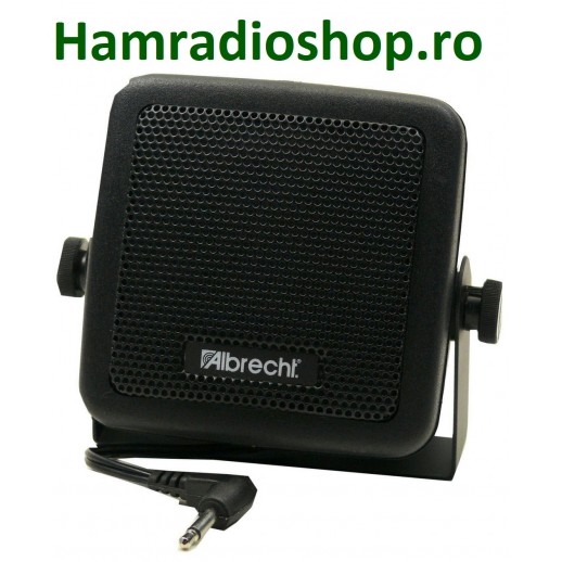 Un difuzor compact cu suport de fixare, cablu de conectare și mufă mono jack de 3,5 mm.